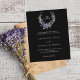 Svart bakgrund. En blomsterkrans gjord av lavendelblommor och akvarellmålade eukalyptusgröna. Anpassa och lägg till dina initialer, namn och detaljer. Vit text.