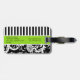Svart vit, limefrukt görad randig damastast bagagebricka
