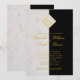 Svart Vit Marmor Monogram Guld Elegant Bröllop Inbjudningar