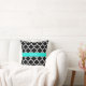 Svart Vit Marockansk #5 Ljus Aqua Namn Monogram Kudde