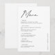 Letar du efter en bröllopsbordmeny? Vi presenterar vår fantastiska Svart Vita Modern Typografi Bröllopsbord Meny! Denna enkla bröllopsmeny utstrålar tidlös sofistikering med sin eleganta moderna typografi och snygga, minimalistiska design. Det är det perfekta valet för par som söker underdrivna men ändå stilrena bröllopsinbjudningar som fångar essensen av ett elegant modernt bröllopstema.