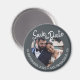 Svartvit fotomodern script spara datum-magnet med ett hjärtformat fotofönster, djup svart bakgrund och handskriven text i vitt. Denna design placerar ditt förlovningsfoto i centrum medan den tydligt presenterar datum och plats för bröllopet i en raffinerad, modern färgpalett. Perfekt för formella bröllop, kvällsfiranden, destinationsevenemang eller förnyelse av löften med en modern, tidlös estetik. Personliggöras enkelt med dina detaljer.