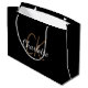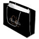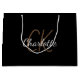 En klassisk svart bakgrund. Personifiera och lägg till ett namn och monograminitialer. Namnet skrivs med en gyllene modern handskriven stilsnack. Gyllene och vita bokstäver. Perfekt för födelsedagar, bröllopsfest och baby shower.