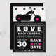 Svart & Vit och rosa motorcykel Biker Silhouette Bröllop Spara datum. Ett riktigt bra klassiskt och modernt tema för bröllopsinbjudan. En bra inbjudan för alla motorcykel-, rock n roll- eller avvikande bröllop! Stick ut ur mängden med dessa fantastiska svarta, rosa och vita inbjudningar! Skapad och upphovsrätt 2011 Julie A Farrell OddLotPaperie Designs. Om du behöver hjälp med att anpassa denna inbjudan, vänligen kontakta mig via länken i min butik så hjälper jag dig gärna! Ett fantastiskt motorcykelbröllop spara datum med motorcyklar och rosa hjärtan och STOR typografi!