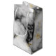 mestadels vit med svarta och gyllene färger för att skapa ett marmormönster.