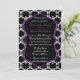 Svart, vit och purpurfärgad damastast bröllopinbjudan