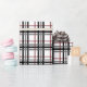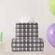Ett klassiker- och ett slags tvåsittssoffaplädmönster får en stilfull vridning, genom att kombinera en klassikerkombination av en vitbakgrund med svart- och gråttpubar med en rik röd brytning.