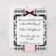 Svart och vitt sätter tonen för denna eleganta inbjudan, med en svart rosett på en rosa rand och ett svartvitt barockmönster på kanterna. Anpassa texten på framsidan och baksidan av detta kort för att göra det personligt.