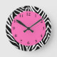 Svart-, vit- och shock rosazebra tryck rund klocka