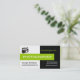 Affärskort som fångar foto, svart, vitt, grönt, öga och som innehåller en fotografisk kamera i svart på vit, svart bakgrund och ett limgrönt band med texten Fotograf. Ett affärskort av underbar professionell för fotograf- eller fotobranschen och tjänster.
