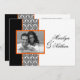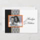 Svart vit Orange Damask Fotobröllopsinbjudning Inbjudningar