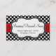 Snyggt och ogenomskinlig bakgrundsdesign för svartvit polka, med rött band och vit ram form. Kort Business Namn och taggline på framsidan med kontaktinformation på baksidan. Ett sött högkontrastgrafiskt stil som fångar öga. All design Copyright © www.CustomInvitesOnline.com
