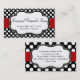 Stilren och elegant svart-vit prickig bakgrundsdesign, med rött band och vit ramform. Kort företagsnamn och slogan på framsidan med kontaktinformation på baksidan. En söt grafisk stil med hög kontrast som fångar ögat. Alla mönster Copyright © www.CustomInvitesOnline.com