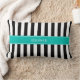 Svart Vit Rand Turkos Band Namn Monogram Lumbarkudde