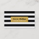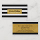 Svart & Vit Randig med Guld Chic Namnkort. Vacker, Elegant och Glamourös Namnkort för alla yrken.