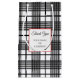 En redigerbar presentväska för småföretag eller fest med skrivstil och dekorativa bokstäver i en fyrkant ramad i rött på ett svartvitt horisontellt Glen-inspirerat rutigt mönster med tunna ränder.
