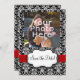 Stilren och elegant svart och vit damast bakgrundsdesign, med rött band och vit ramform. En söt bröllopsinbjudan och matchande samlingskollektion. Alla mönster Copyright © 2012 www.CustomInvitesOnline.com