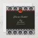 Elegant, klassisk, unik blomdesign, svarta vita nejlikor med en ljus 3D rubin. Du kan flytta ädelstenen för att anpassa med dina initialer och egen text som en bröllopsannons, platskort, save-the-date, romantisk förlovning, tackkort, brud shower, söta 16 födelsedagsfester årsdag, examen eller bara vilken händelse som helst du önskar!