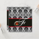 SVART VIT RÖD SILVER DAMASK MONOGRAM Ruby Inbjudningar