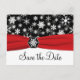 Den här svarta och vita snöflingor sparar datumkortet med FAUX-rött band och snöflingmedaljonen matchar den bröllopsinbjudan som visas nedan. Om du vill ha några andra matchande objekt i den här designen skickar du e-post till niteowlstudio@gmail.com.