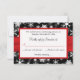 Detta svart och vita snöflingor svarskort har ett rött TRYCKT PÅ band och snöflinga medaljong på sig. Det matchar den bröllopsinbjudan som visas nedan. Om du behöver några andra matchande föremål i denna design, eller om du vill ha en annan färgkombination, vänligen maila din förfrågan till niteowlstudio@gmail.com.