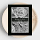 Klassisk elegans beskriver den här vackra svarta inbjudan och inbjudan till vit ros bröllop spara datum. Du kan anpassa framsidan med namn och baksidan, som har en ogenomskinlig bild av ro, innehåller de viktiga detaljerna om bröllop. Copyright henishouseofpaper