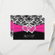 Svart, Vit, Rosa Damask & Hjärtan Svar Brevkort