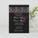 Denna design med sin svarta och vita med rosa accent flammande omvända zebrarabatt som tittar ut bakom en svart bakgrund blandar samtida och klassiska element och gör en elegant bröllopsinbjudan.