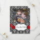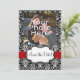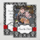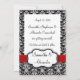 Stilren och elegant svart och vit damask bakgrund, med rött band och vit ram. En fin bröllopsinbjudan och samling. Alla designs Copyright © 2012 www.CustomInvitesOnline.com