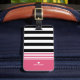 Svart, vit & shock rosa görad randig personlig bagagebricka