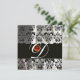SVART VIT SILKE DAMASTDUK MONOGRAM RÖD RUBIN INBJUDNINGAR