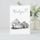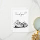 Detta är ett tackkort med en svart-vit skiss av ett berg och dal med en stuga och träd runt omkring. Jag älskar att rita skisser, särskilt av berg! Den här ger känslan av stillhet och tystnad som eftersträvas i det hektiska samhället.