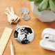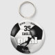 Den här svarta och vita flickans fotbolls-knackningskedja har ord som "mål" med överliggande silhuett av en kvinnlig fotbollsspelare som sparkar en liten svart och vit fotboll plus anpassade-spelare namn och jersey-nummer och skola och mascot namn, som alla ligger över en enkel fotbollsgrafik - av katz_d_zynes