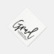 Denna enkla och moderna examensfestliga pappersservett har en ren vit bakgrund med svarta teckensnitt för en tidlös, könsneutral look som fungerar vackert för både pojkar och flickor. All text är snyggt placerad i det nedre högra hörnet för en snygg, återhållsam stil. ”Grad” visas i elegant handskriven stil, tillsammans med examenstagets namn, ”Klass av 2026” (eller vilket år som helst) och skolans namn i klassiska serif-teckensnitt.