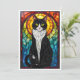 Svart-vit smokingkatt platt i glasmålningstil kort