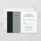 Detta svarta, vita och turkosa svarskort matchar bröllopsinbjudan som visas nedan. Texten och papperstypen är anpassningsbar. Om du behöver några andra matchande föremål, vänligen maila din förfrågan till niteowlstudio@gmail.com.