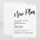 Denna svits utmärkande beror på det djärva, avslappnade handskrivna skrifttypsnittet som används för accentfraser. Om du är i den situationen att du behöver informera dina bröllopsgäster om att du har varit tvungen att ändra din stora dag, här är ett djärvt alternativ. I denna del användes det handskrivna skrifttypsnittet för att skapa en enkel grafik som visar ordet "Ny plan". Använd mallfälten för att lägga till dina personliga uppgifter och gör denna moderna design till din egen. Den vita bakgrunden kan ändras till valfri färg du föredrar. Vänligen kontakta oss med eventuella specialförfrågningar eller för anpassningshjälp. // 105 //