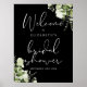 Svart-vit välkomstskylt för bröllopsdusch med grön poster
