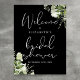 Denna eleganta välkomstskylt för bröllopsdusch med botanisk grönska i svart och vitt kan anpassas med din information i chic typografi. Designad av Thisisnotme©