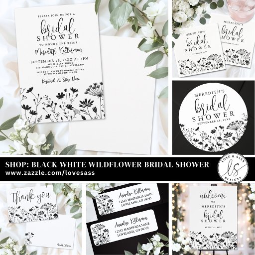 Simple Chic Black White Wildflower Bridal ShowerDesignad av Jo P.