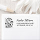 Returadressetikett med vildblomsdesign. Denna minimalistiska och eleganta etikett är perfekt för bröllopsdusch, baby shower eller någon som älskar en enkel, tidlös stil. Designen har en ren vit bakgrund med en delikat svart kontur-illustration av vildblommor på vänster sida för en mjuk, modern touch.