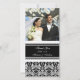 Bröllop tackar dig för bildkorten i elegant och modern svartvitt med delikat fuktmönster för blommigt. Ett perfekt sätt att tacka vänner och familj för bröllopsgåvor och dina bröllop-foton. Finns i matchande porto och många andra produkter för bröllop.