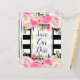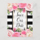 Svart Vita Ränder Rosa Blommig Spara Datum Meddelande Vykort