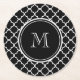 Svart vitQuatrefoil mönster, din Monogram Underlägg Papper Rund