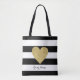 Den moderna svartvita randiga personligtotot hänger lös med guld omkullkastar hjärtadesign.