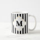 Svartvita randar med en vitdiamant med guldklippning och en anpassademonogram.