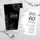 Svart Vit Botanisk Överraskning 60-års Bröllopsjubileum Firande Inbjudan. Modern minimalist design med botaniska accenter och typsnittsmanus. Enkel blommig inbjudningskort perfekt för en stilfull överraskningsfest. Kan anpassas för alla års äktenskap. Tryckta Zazzle-inbjudningar eller direkt nedladdningsbar digital utskriftsbar mall.