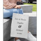 Svart och vit bröllopspresentpåse med brud och brudgums namn. Fler produkter med denna design finns i kollektionen nedan.