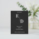 Svart Vit Monogram Modern Bröllopsinbjudan Postkort . Designen har en svart bakgrund med bröllopsdetaljer skrivna i vitt och i ett elegant teckensnitt . Framsidan av kortet innehåller all information . Skicka ut dessa söta eleganta moderna samtida minimalistiska inbjudningar till vänner och familj . Anpassa den genom att ändra parets namn och andra detaljer . Denna inbjudan är en del av en samling . Kolla in matchande inbjudningskort , Save the Date-kort , RSVP-kort och tackkort i samlingen . För ytterligare anpassning, kontakta mig gärna på mypaperlove2021@gmail.com