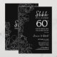 Svart Vit Botanisk Överraskning 60-års bröllopsjubileum Inbjudan. Modern minimalist design med botaniska accenter och typsnittsmanus. Enkel blommig inbjudningskort perfekt för en stilig överraskningsfest. Kan anpassas för alla års äktenskap. Tryckta Zazzle-inbjudningar eller direkt nedladdningsbar digital utskriftsmall.